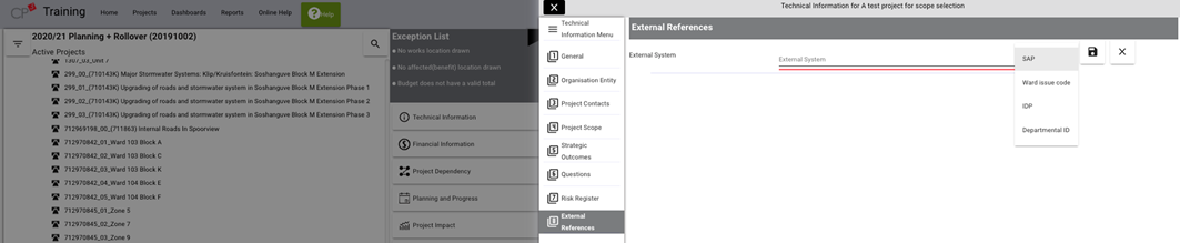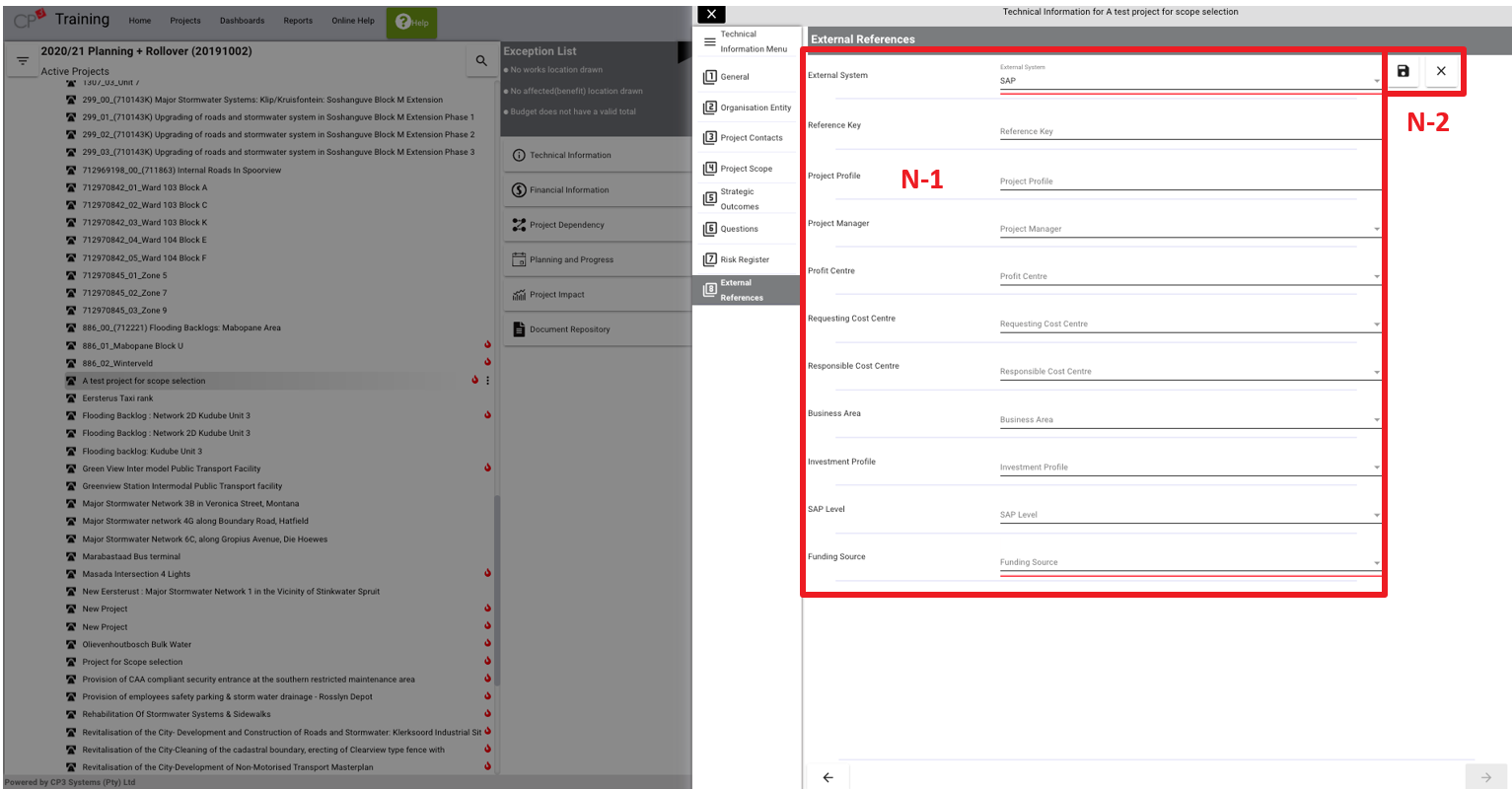 The last option listed on the project technical information window outlines project external references. External references refer to unique ID’s or project numbers used in systems outside of CP3. This window allows users to generate a link between CP3 and external systems.
