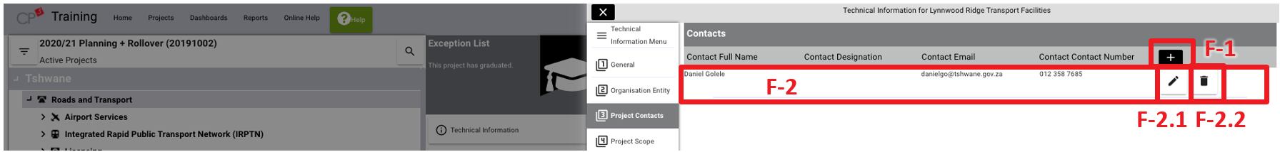 - (F-2) If an existing contact is added to the project, the contact information will be listed.