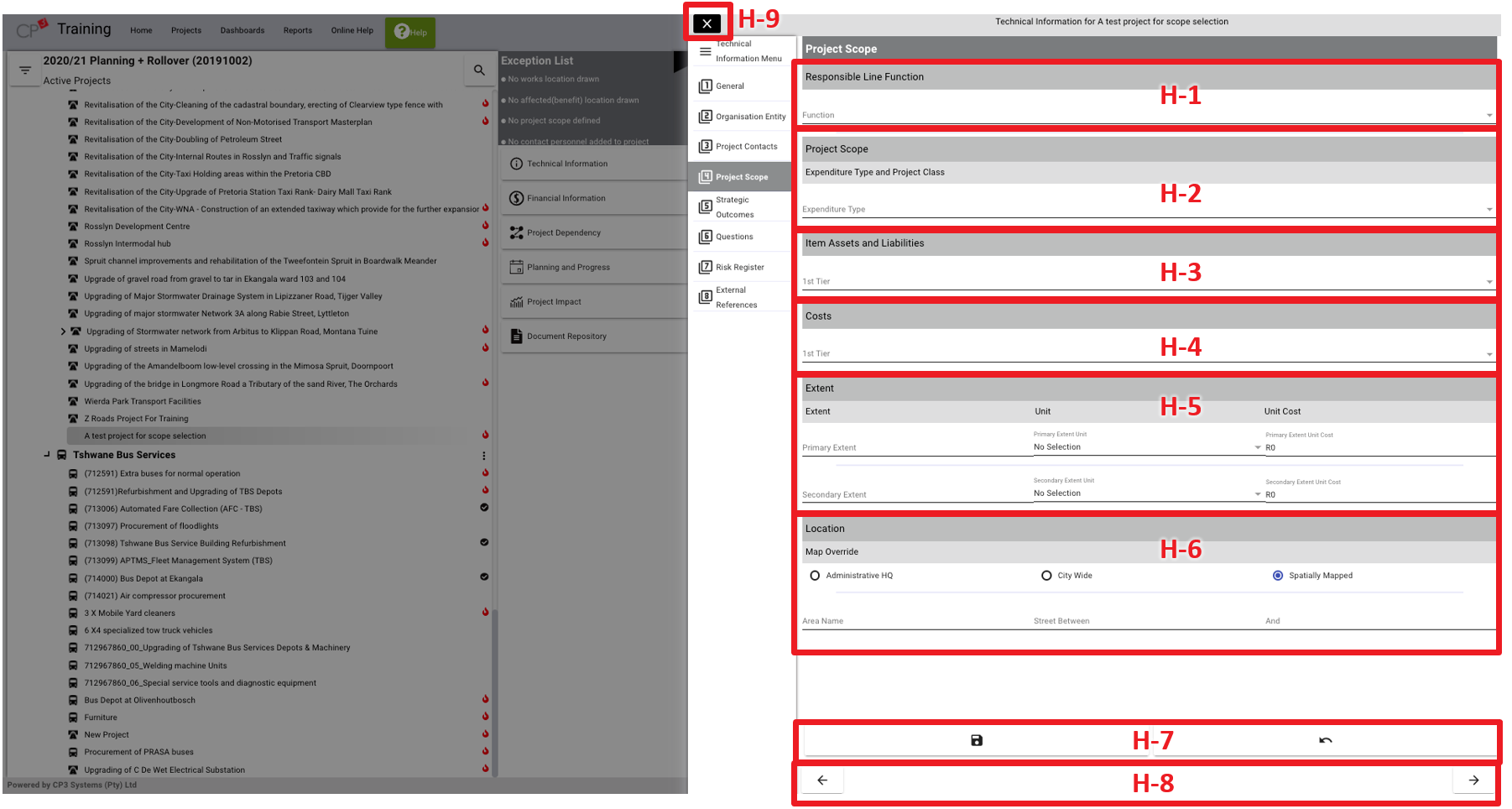 - (H-2) Selections are made from the mSCOA list of options available for project scope.