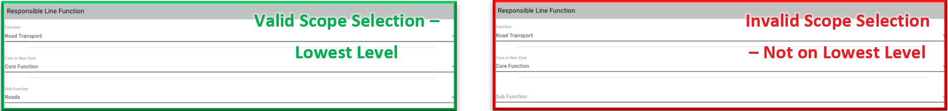 - Project scope selections should be selected to the lowest level in order to ensure a valid data-string submission.