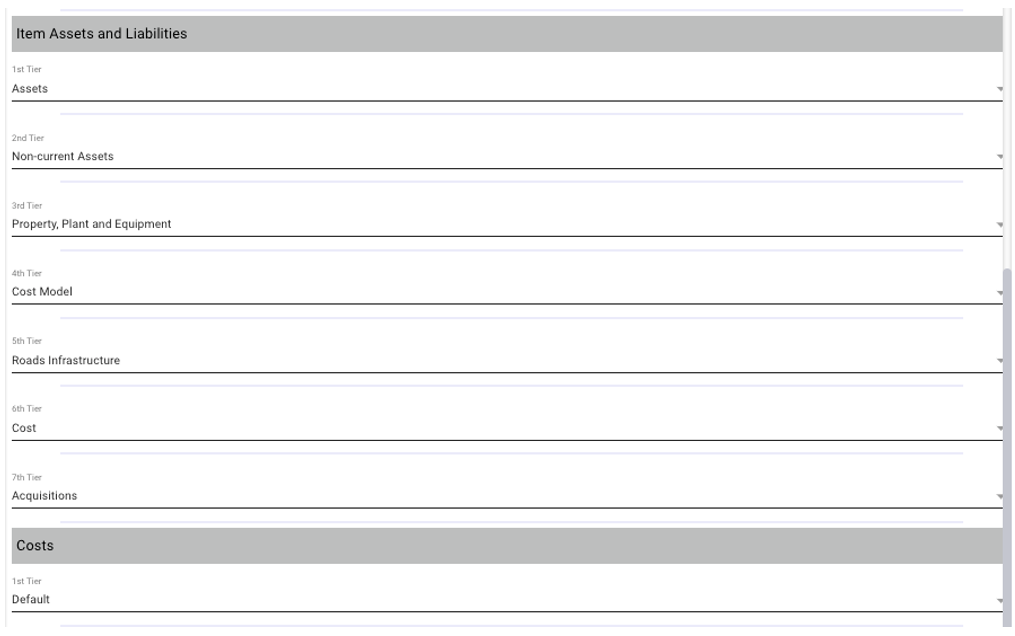- (H-4) Selections are made from the mSCOA list of options available for the cost segment.